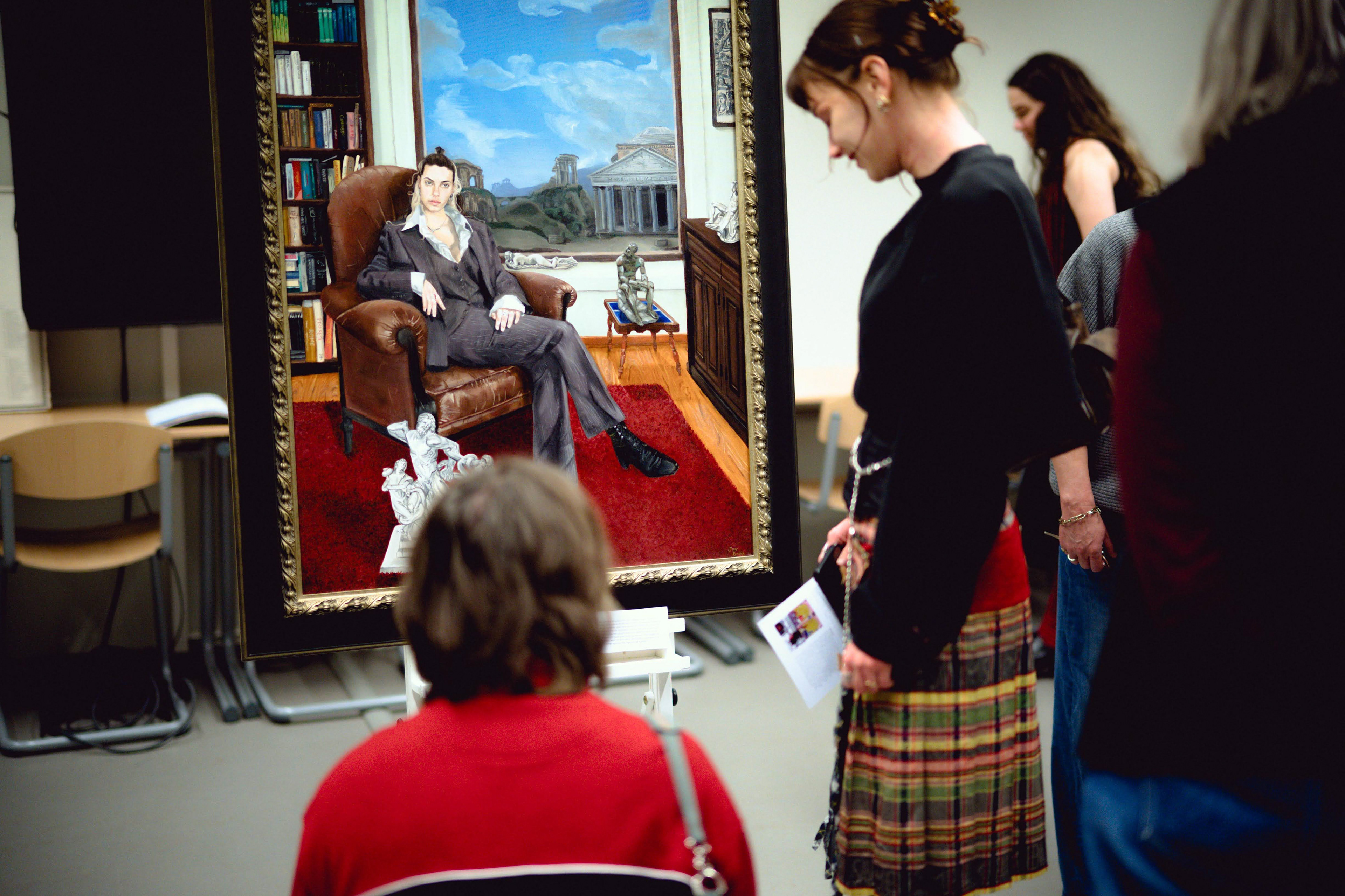 With this self-portrait, I express my ambiguous relationship to classical studies, which on the one hand I want to satirize for being a pedantic male-centered claim to authority and power, while on the other hand I feel deeply connected to those 'classics' (or what people have made them to be).